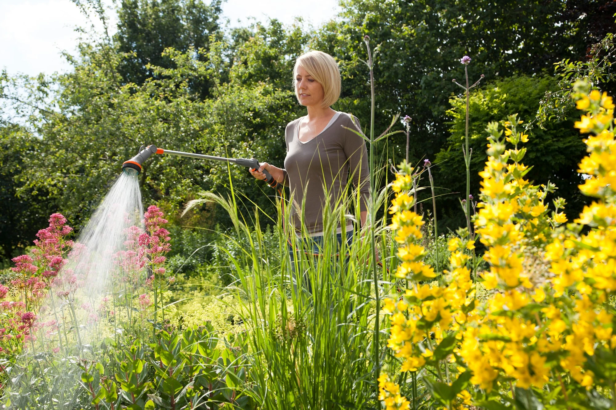 Med Comfort sprinklerstav och dess vridbara sprinklermunstycke kan hÀngkorgar och svÄrÄtkomliga vÀxter vattnas bÄde enkelt och precist med.