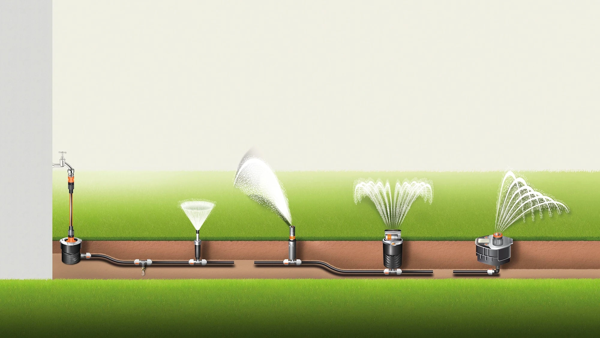 Beroende pÄ storlek pÄ omrÄdet som ska bevattnas kan spridarens rÀckvidd justeras steglöst mellan 6 och 11 m. Den sektor som ska bevattnas kan stÀllas in steglöst mellan 25 och 360°.