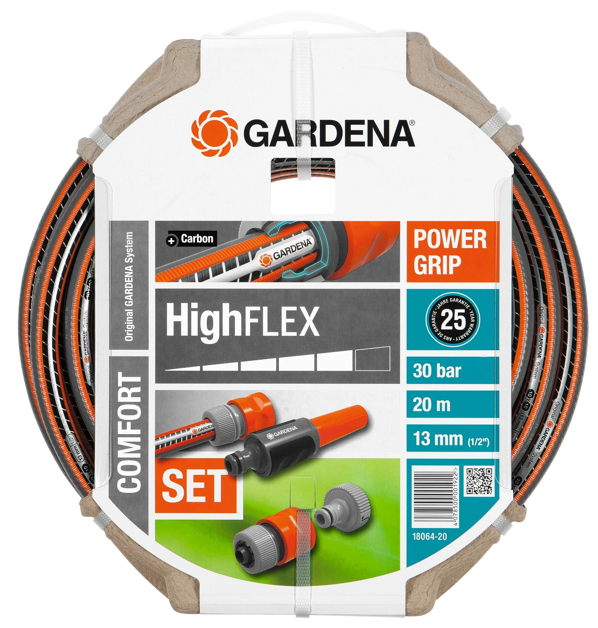 Praktiskt paket som innehÄller Gardena Comfort HighFLEX slang samt olika Gardena system-kopplingar. Comfort Flex slangen Àr mer flexibel och lÀtthanterlig Àn andra slangar. Den slÄr tex inte knut pÄ sig sjÀlv, snor sig inte och Àr fri frÄn skadliga mjukgörare, tungmetaller och sjÀlvklart UV-bestÀndig.