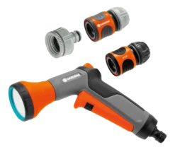Det hÀr paketet innehÄller en komplett lösning med slang, slangkoppling och stoppkontakt, Impulspistol och gÀngad krankoppling.