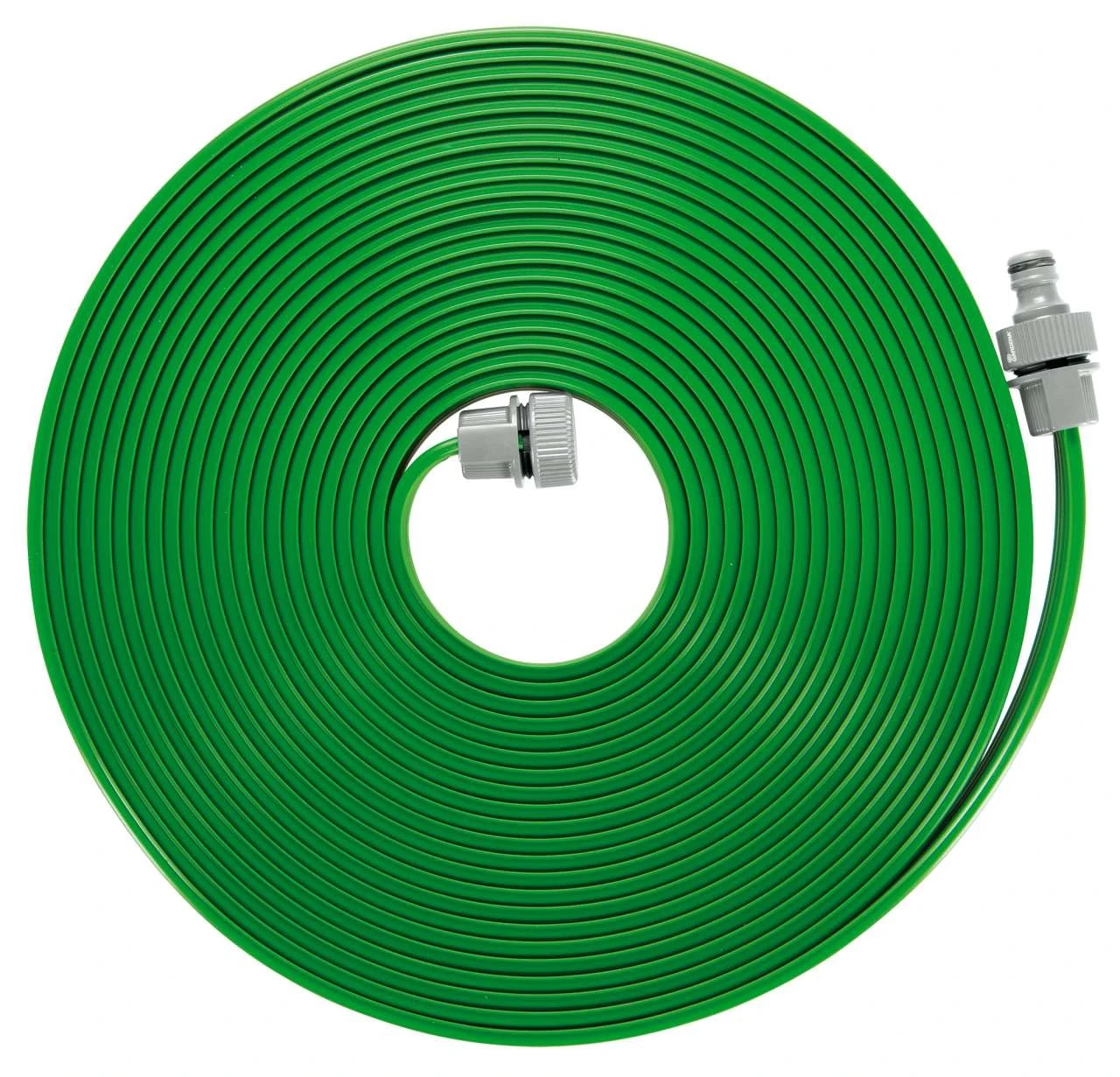 Den grönfĂ€rgade vattenspridarslangen har en fast lĂ€ngd pĂ„ 15 m, men kan enkelt förlĂ€ngas via vanliga kopplingar upp till 22,5 m. Den kan Ă€ven förkortas – skĂ€r av den till önskad lĂ€ngd och montera kopplingarna. Gardena ger hela 5 Ă„rs garanti pĂ„ den hĂ€r produkten.