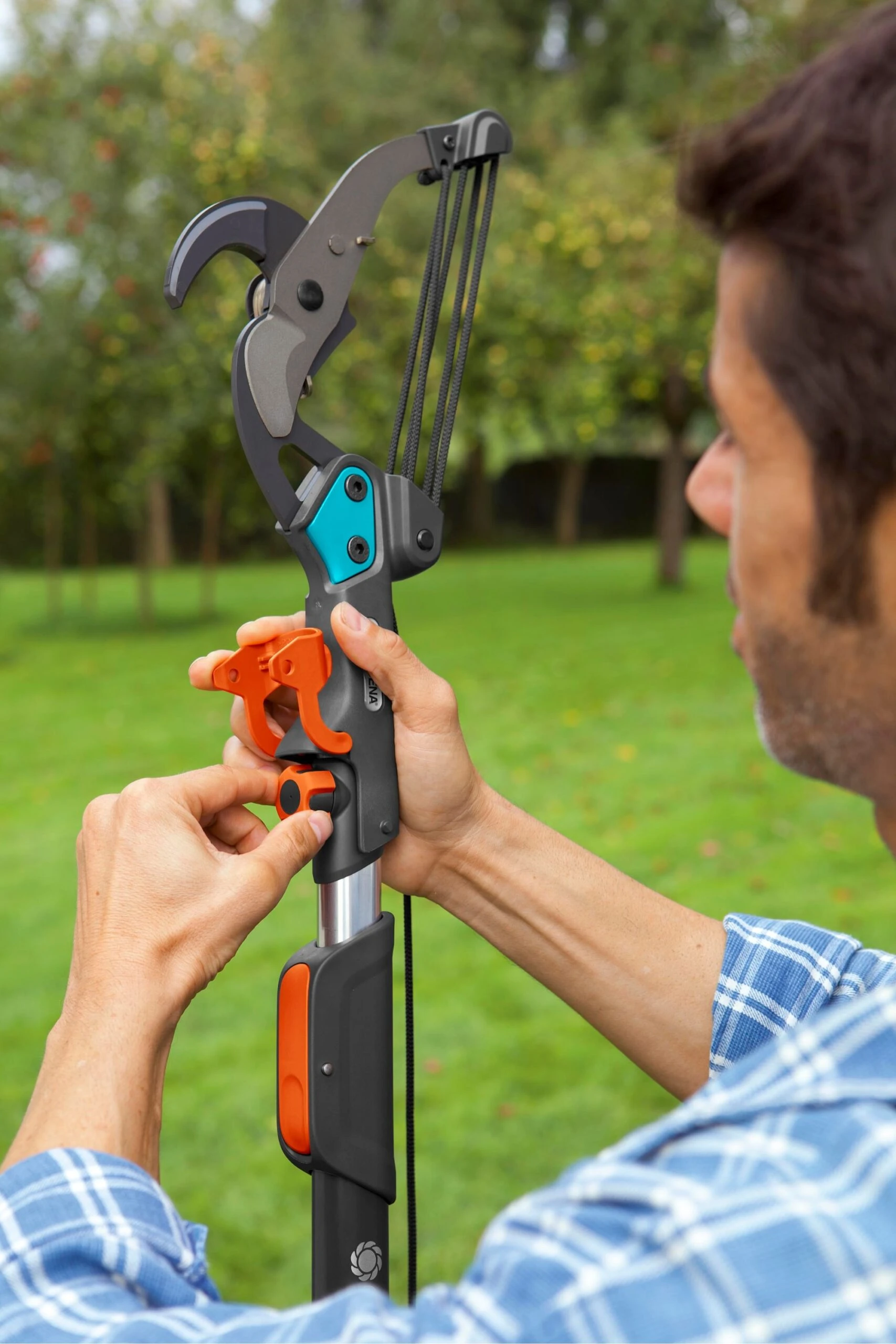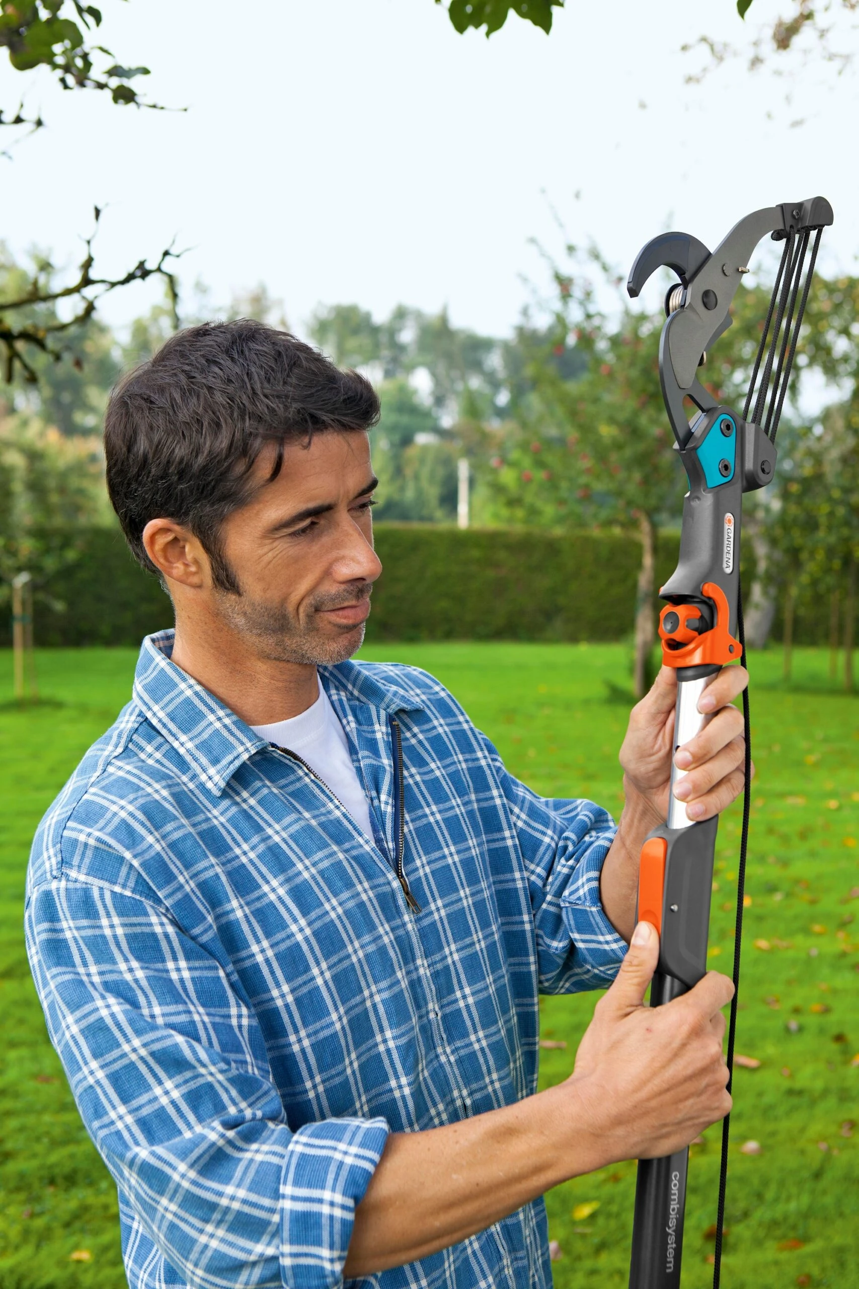 Teleskopskaft frÄn Gardena som passar alla Combisystem-verktyg och Àr idealiskt för att kunna arbeta bekvÀmt pÄ upp till 5 meters höjd. Tack vare det smidiga snÀpplÄset kan teleskopskaftet enkelt förlÀngas i steg om 26 cm, frÄn 210 till 390 cm. Detta ger ett trivsammare arbete anpassat till den aktuella arbetssituationen och anvÀndarens lÀngd.