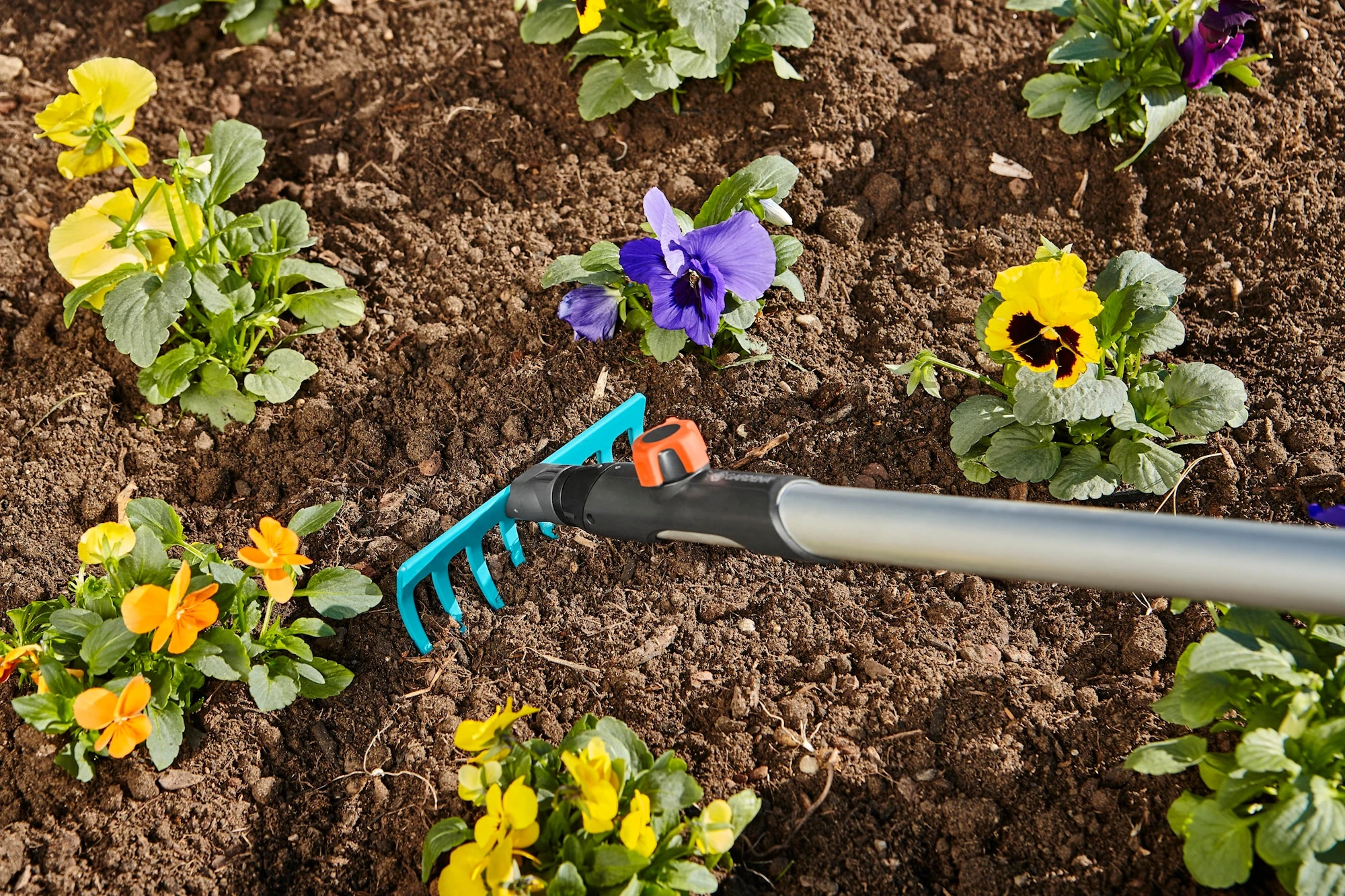 Gardena combisystem TrÀdgÄrdskratta Àr ett praktiskt redskap för mÄnga olika anvÀndningsomrÄden och Àr idealisk för rÀfsning, utjÀmning och bearbetning av jorden.