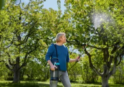 Olika spraystrÄlar sÄ som spraydimma, spraystrÄle eller platt spray garanterar en individuell anpassning för din vÀxtskötsel. Med full laddning av litiumjonbatteriet kan upp till 25 liter sprutas.