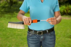 Med den mindre versionen av Gardena HandtvÀttborste med Original Gardena System-anslutning kan du enkelt rengöra kÀnsliga och mÄlade ytor, till exempel utemöbler, garagedörrar och fordon.