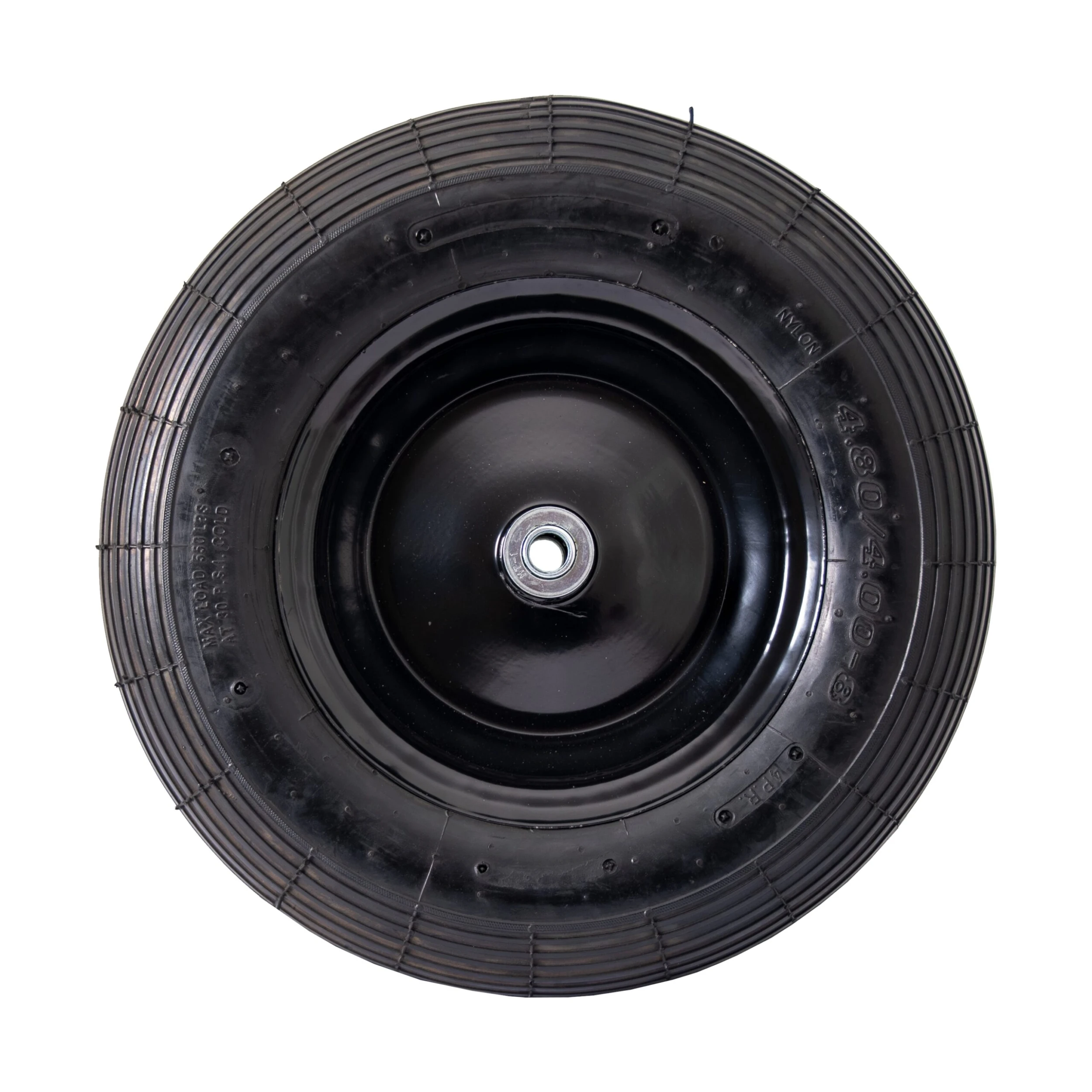 Kullagrat luftgummihjul 16” 4.00-8 med plĂ„tfĂ€lg. Passar till exempelvis Hyma Dubbelhjulig skottkĂ€rra.
